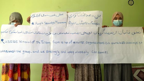در پی تعلیق گروه طالبان از فهرست گروههای تروریستی توسط دادگاه عالی فدراسیون روسیه، جنبش «شنبههای ارغوانی» با نشر اعلامیهای این تصمیم را شدیداً محکوم